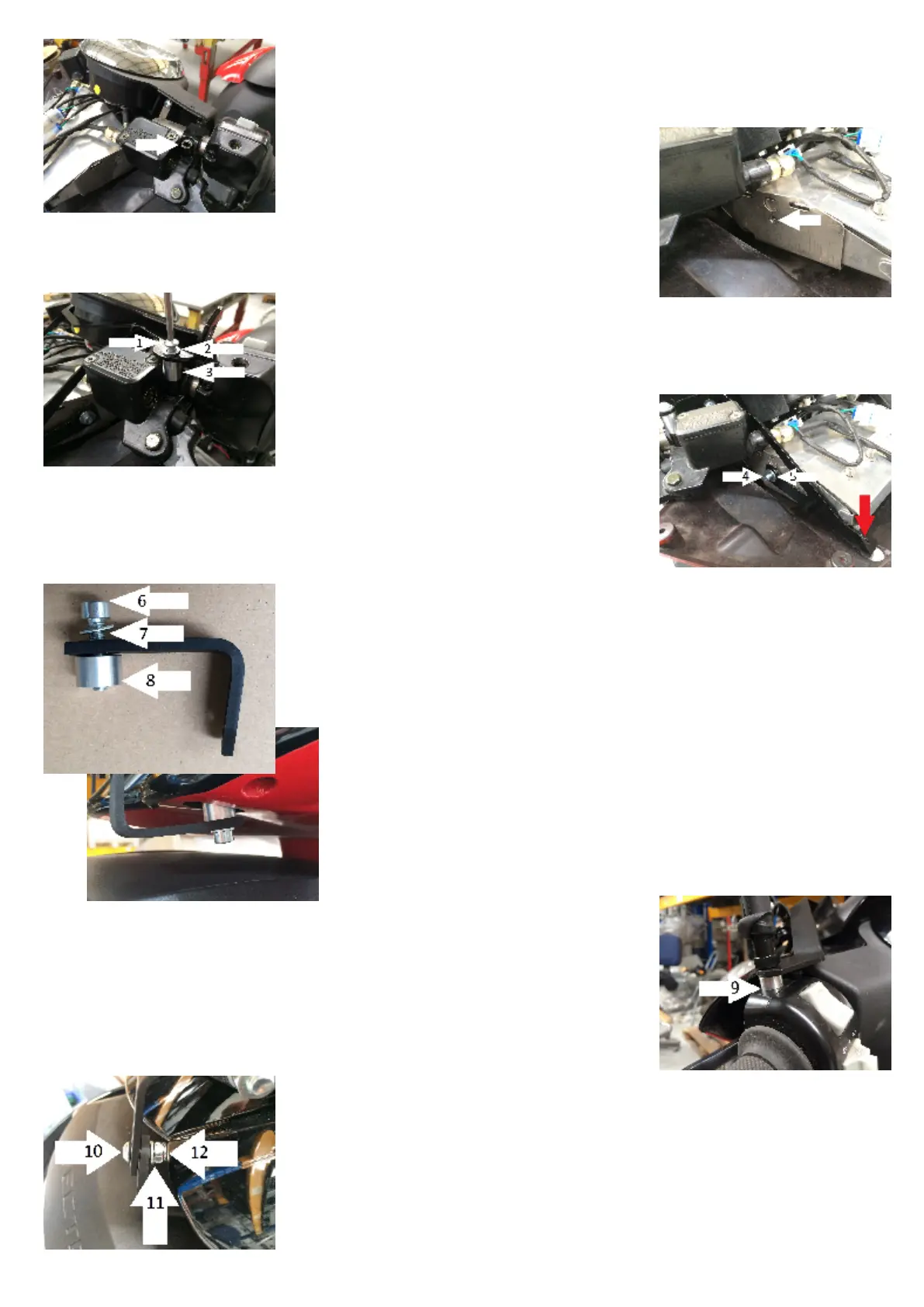 [6] M6/25 bolt, [7] 6 mm washer, [8] 10 mm lenght distance sleeve.