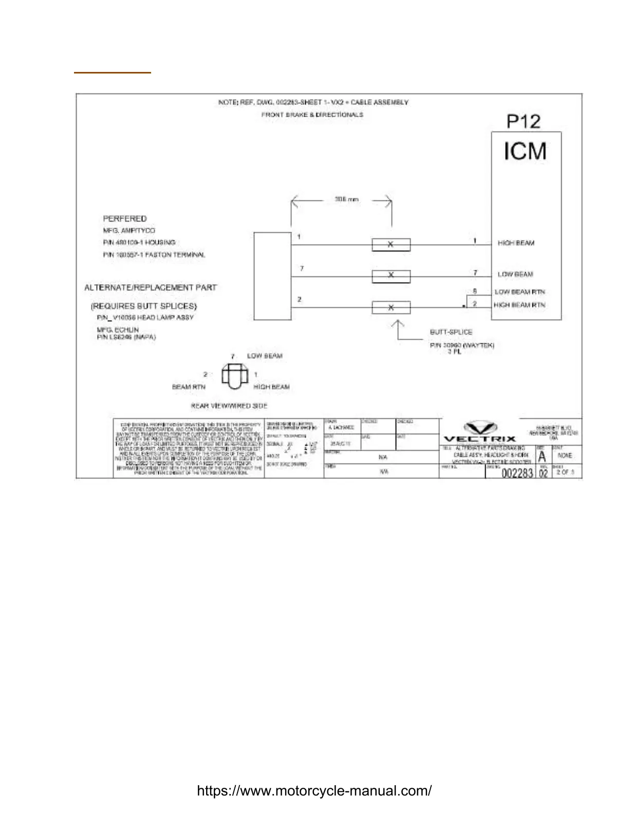Vectrix VX-2 - SECTION F: Technical Information; Cable Assembly-Front Headlamp;Horn + BOM