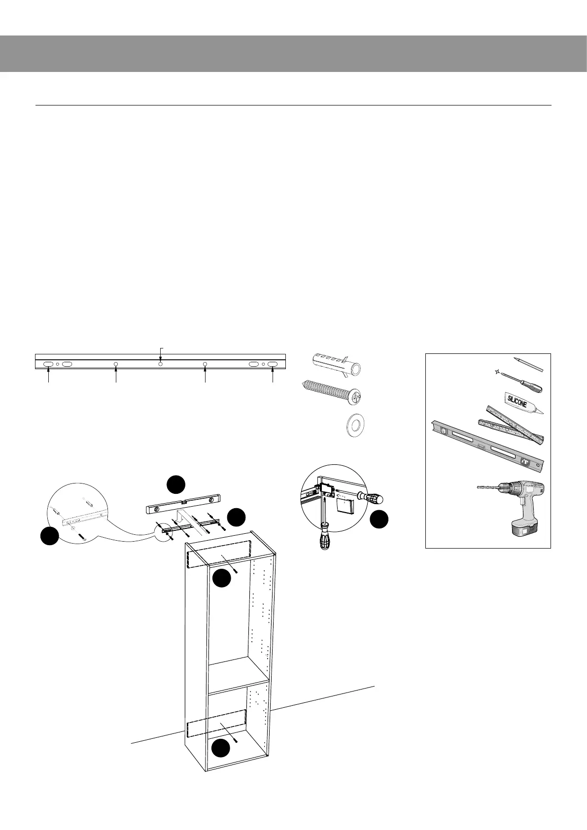 5. Sidoskåp och högskåp ska skruvas i vägg i nedre och övre skruvregel