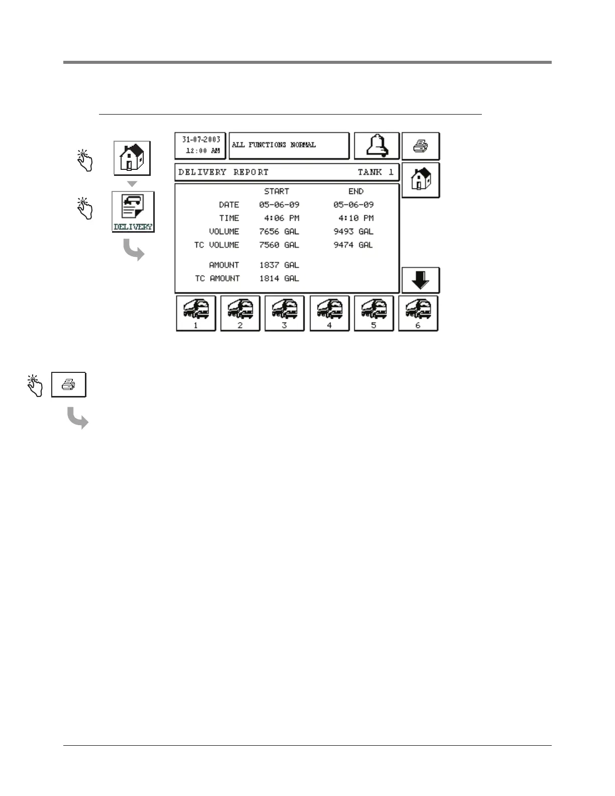 Touch the Tanker button at the bottom of the screen to view a delivery for that tank.