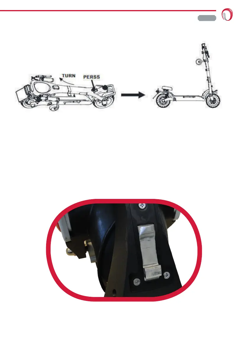 用一只手按压释放按钮, 另一只手提起机器把手至竖直位置