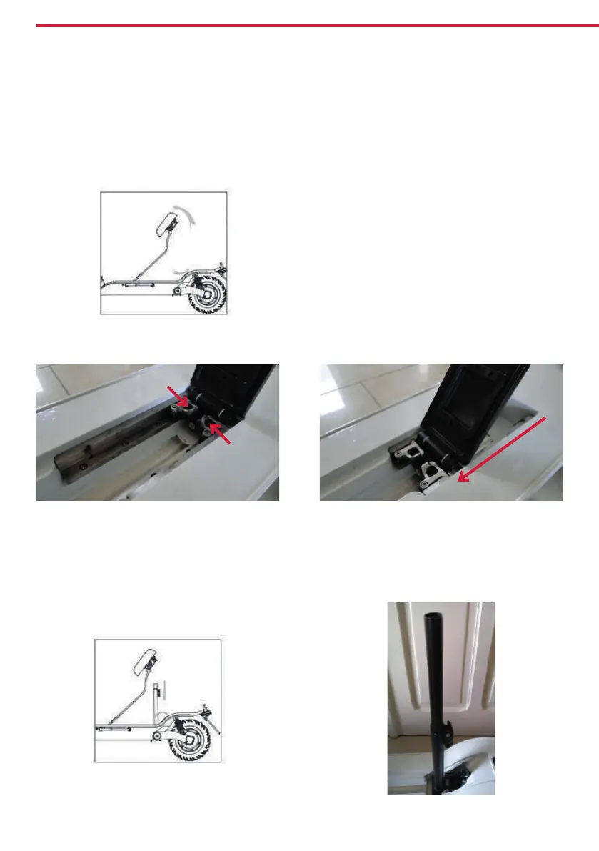 以通过调整坐垫斜杆底部的两处机械锁扣, 并滑动斜杆到导轨另一侧终端位置并卡