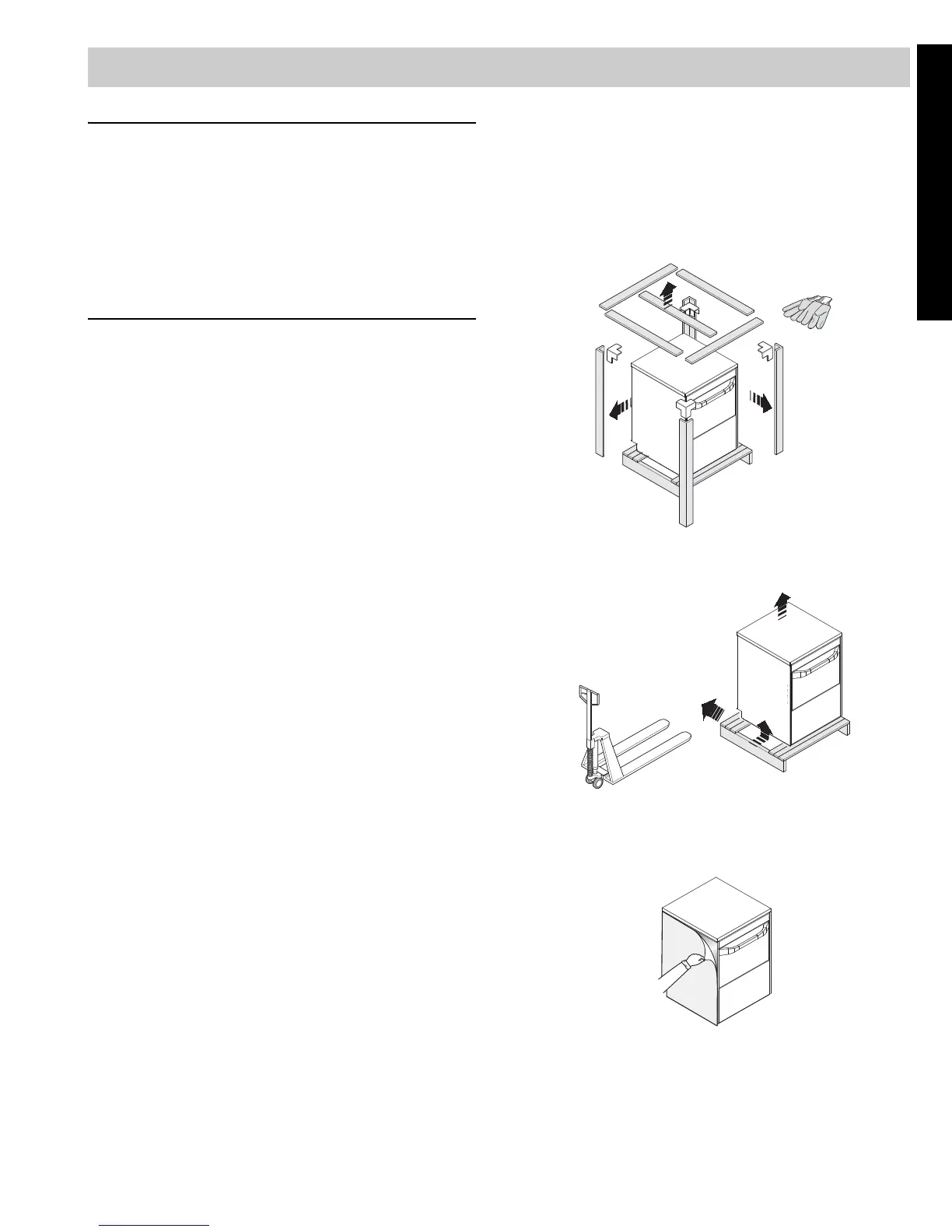 Use suitable means to move the appliance: a lift truck or
