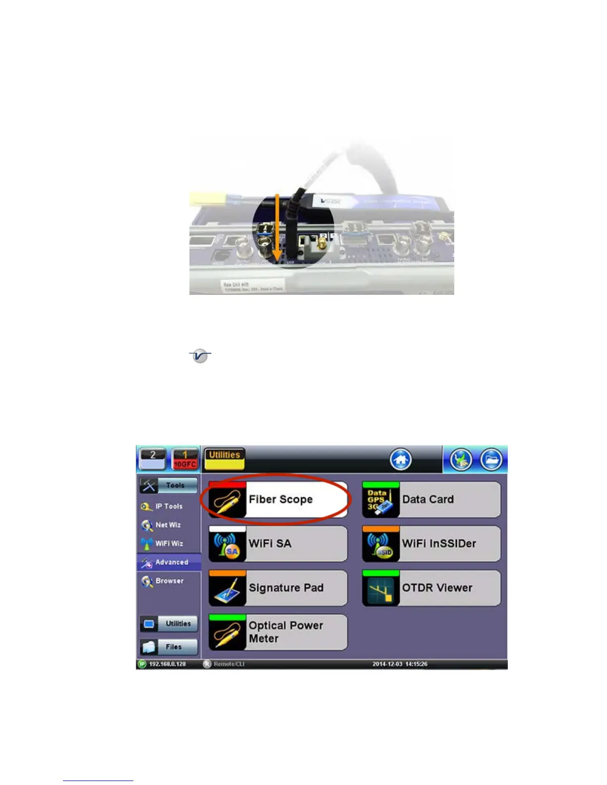 1. Connect the Fiber Scope to the test set, using any available USB port (Older analog fiber