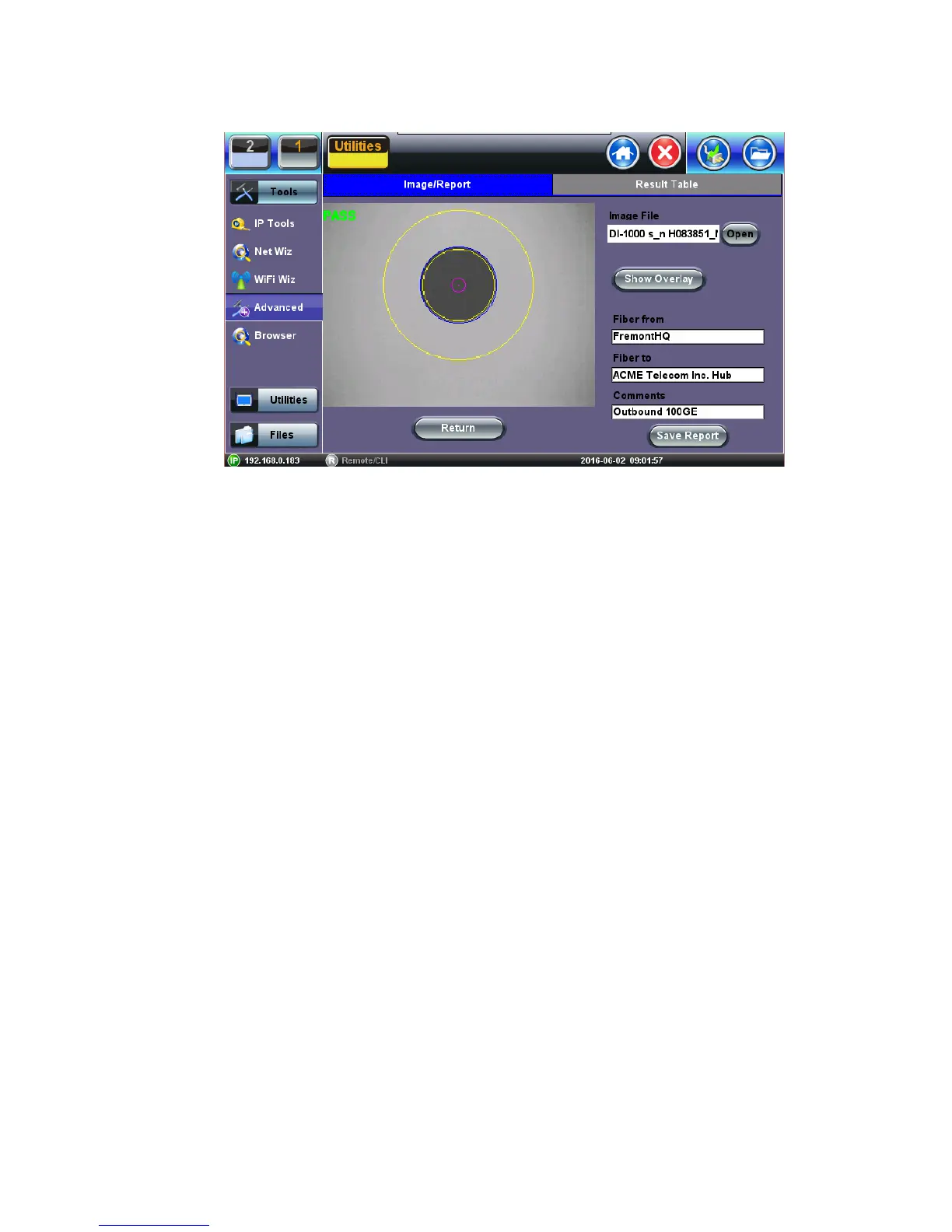 Save Report: Generates a test report for the selected file (html format). Test set can