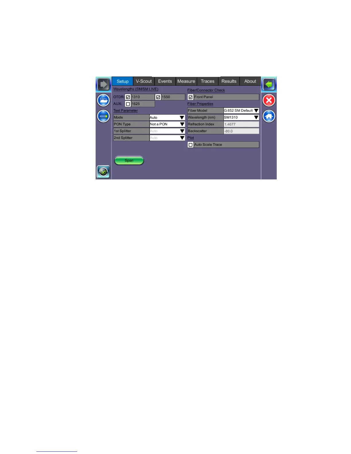 • Real Time button - Used when checking initial connection, VFL testing or splice