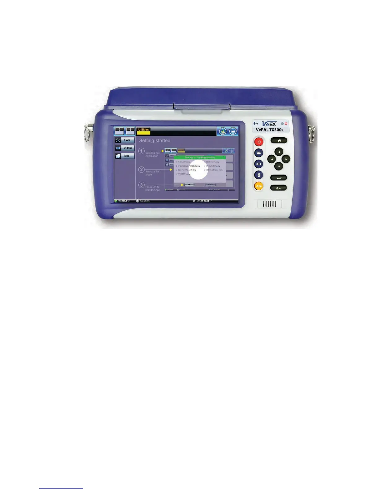 Navigate between test applications, setup menus, tabs, or active functions using the supplied
