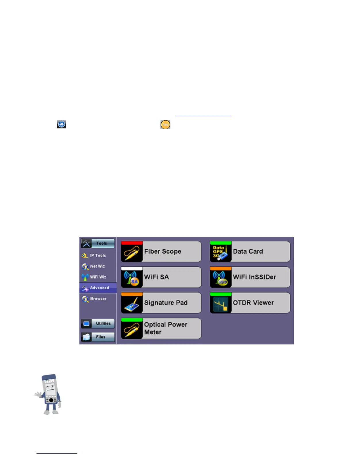 2. Power on the unit. Test App 1 – Test Mode Selection is loaded by default. Select Fiber