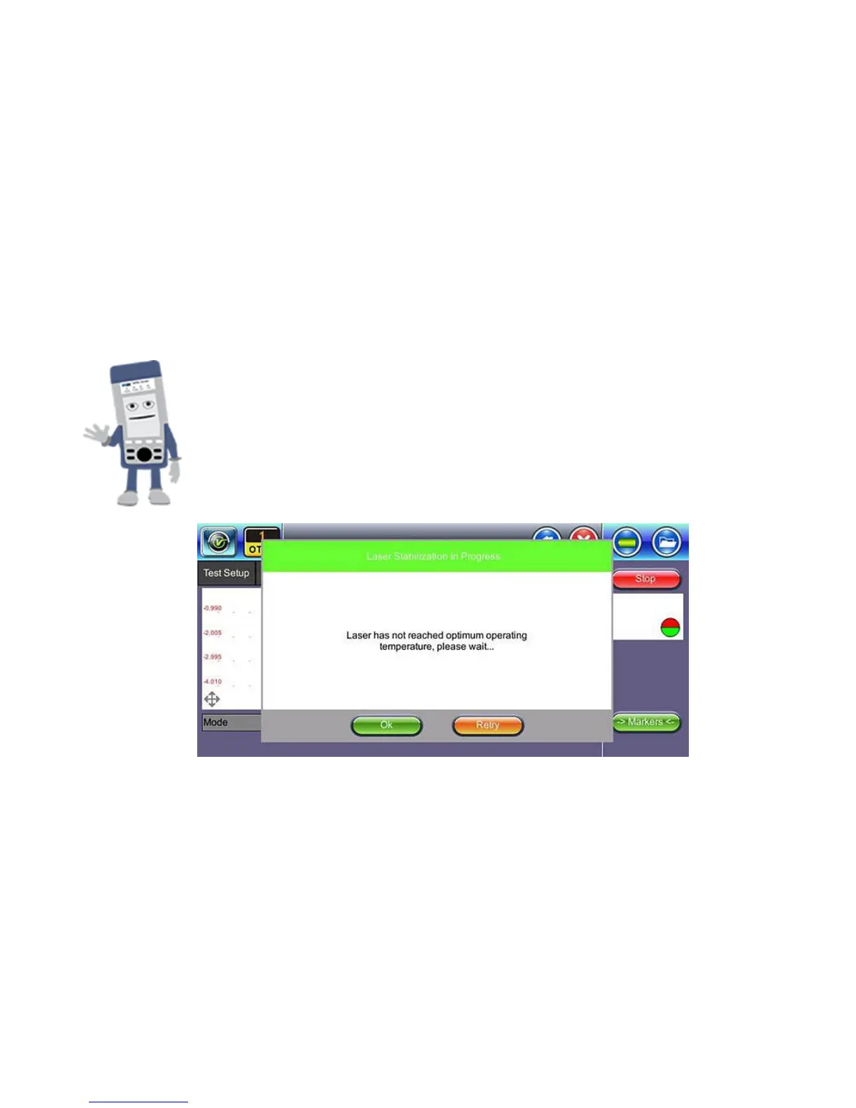 optimal temperature for usage has not been reached, a Laser