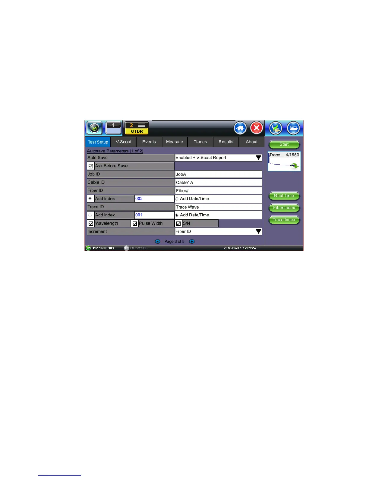 • Increment: Choose to increment Fiber ID or Trace ID
