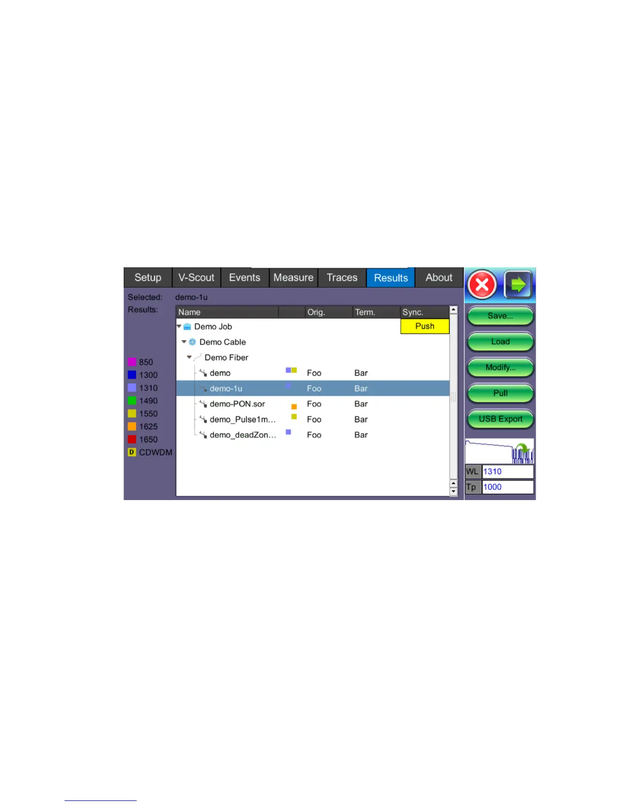 • Pull: When connected, pulls file from Fiberizer Cloud onto test set.