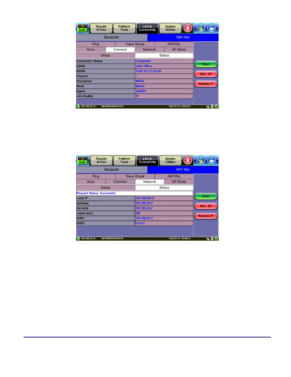After a successful connection to the Access Point press Connect IP to obtain an IP address and access the