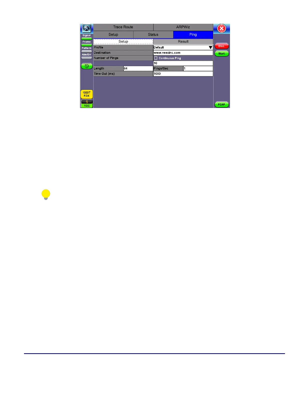 Ping/Sec: Enter the Ping repetition rate (Ping/second).