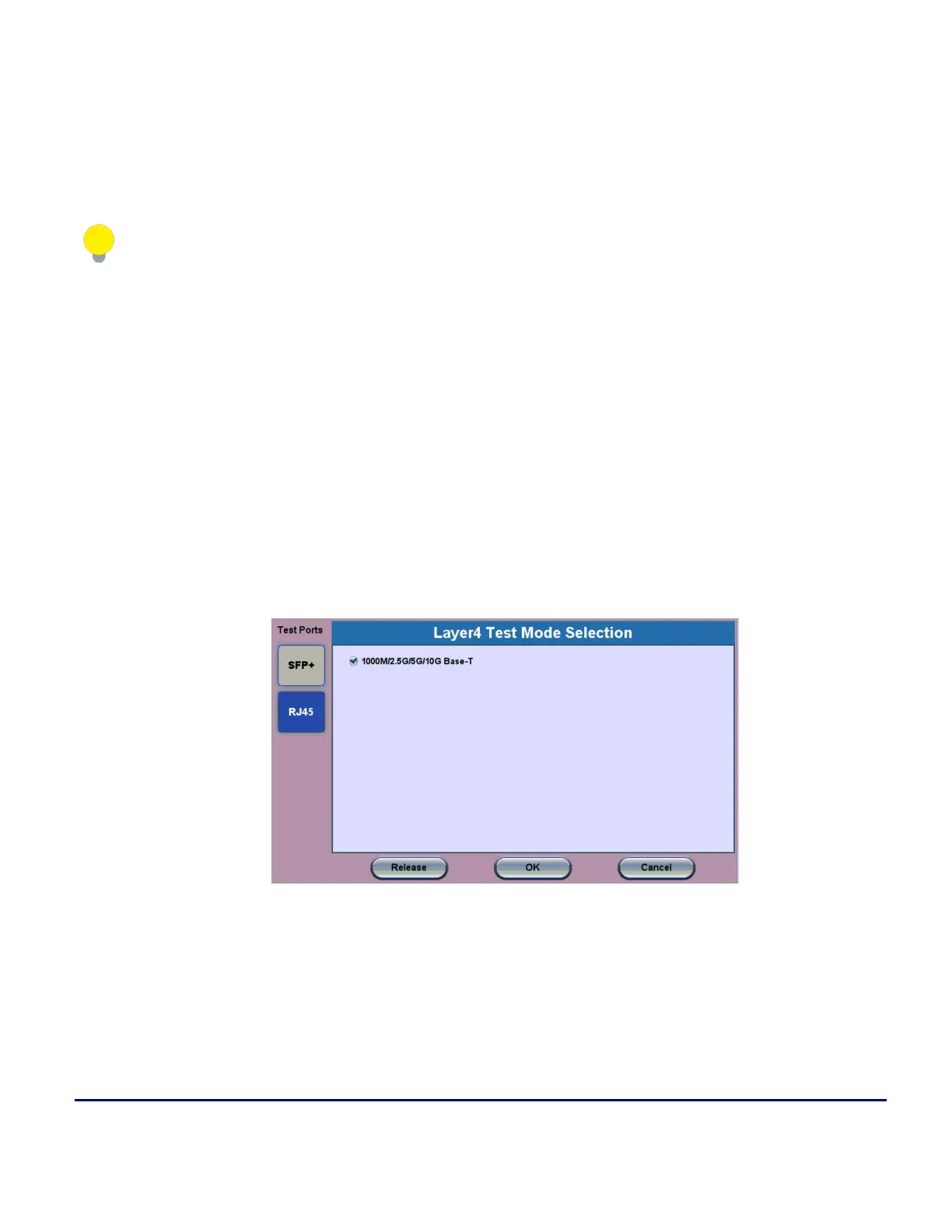 1. Select a Layer 4 test application to launch from the Test Mode menu.