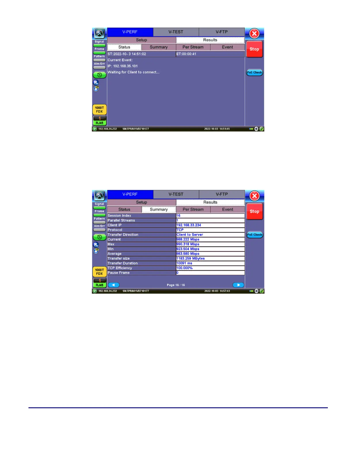 the same link in different directions. Both Test Sets are actually configured as Client & Server at the same time,