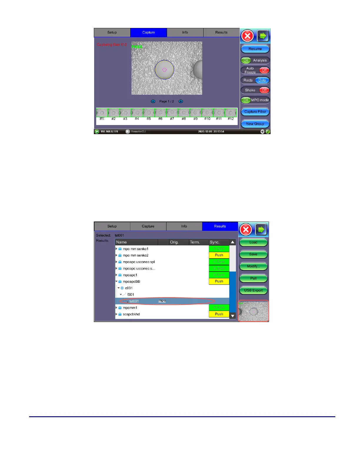 To save MPO results, navigate to the Results tab once all fibers have been captured and press the Save but-