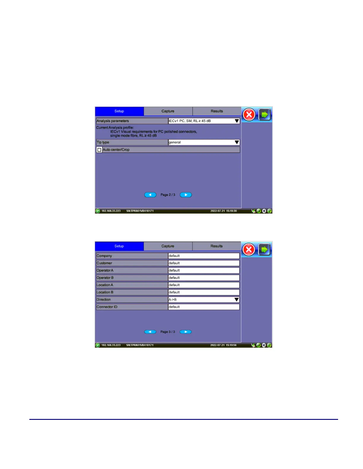 Saved image files can be retrieved from "File Manager" on page64 or managed from the Results tab.