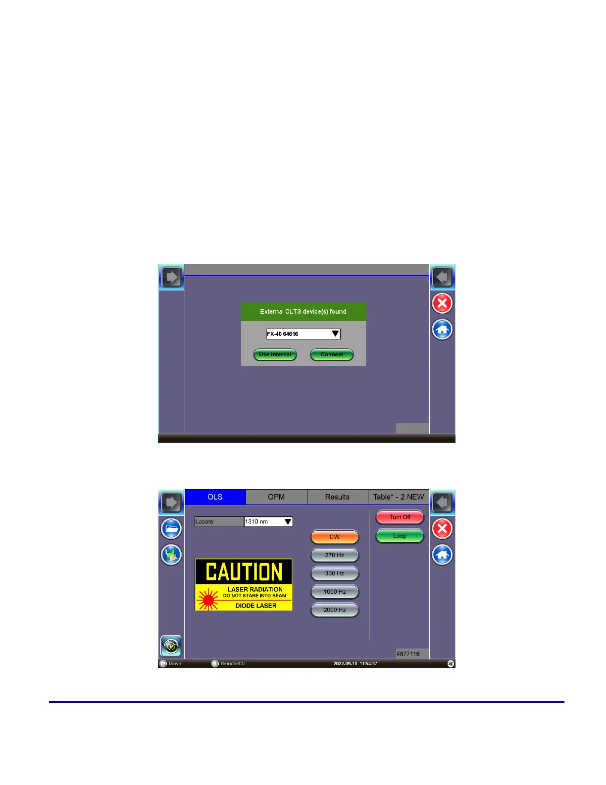 (OLTS) device before launching this application. The unit will automatically detect and display the connected