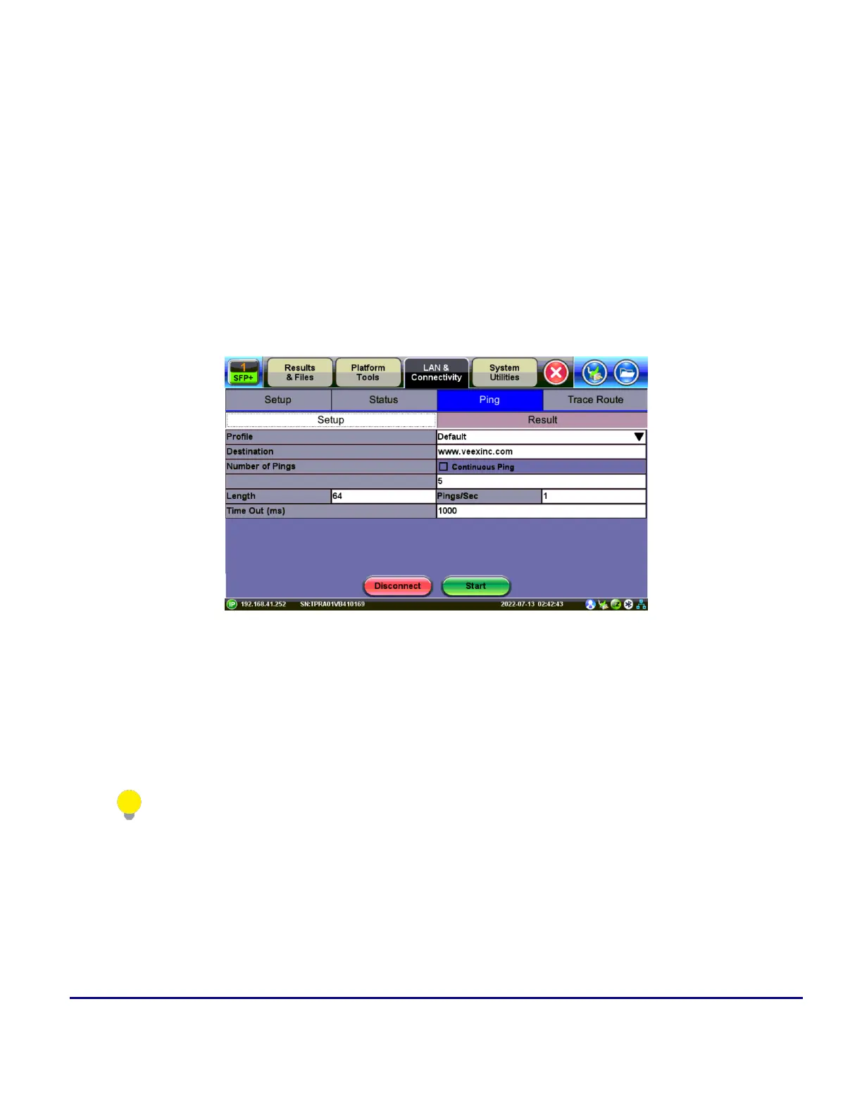 Number of Pings: Enter the number of ping attempts (up to 10000) that will be performed to reach