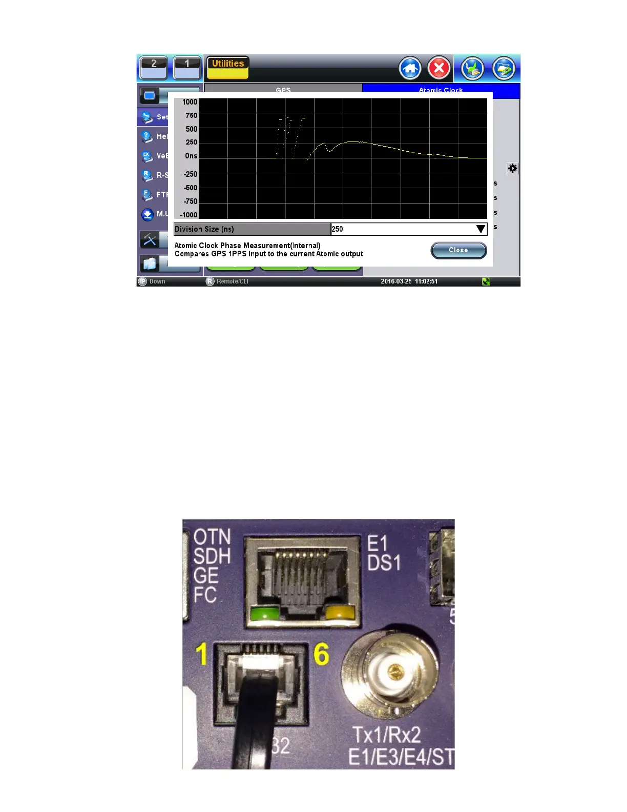 At this point the test set’s internal “Atomic 10MHz” frequency and “Atomic 1PPS” timing reference signals can be considered