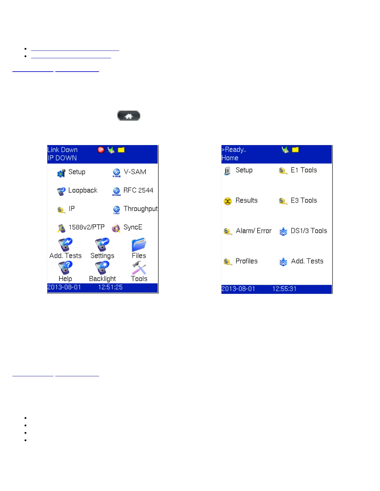 To toggle between Ethernet and PDH/DSn modes, press the MODE key. Either home menu can be accessed at any time during