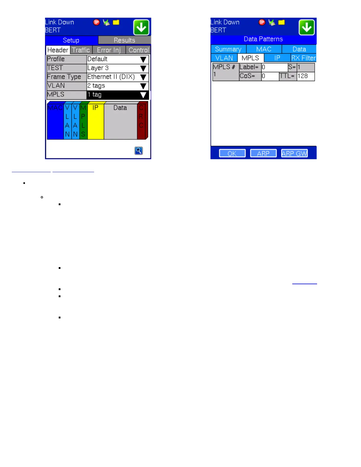 BERT Setup - IP Settings (DSCP) BERT Setup - IP Settings (Legacy TOS)