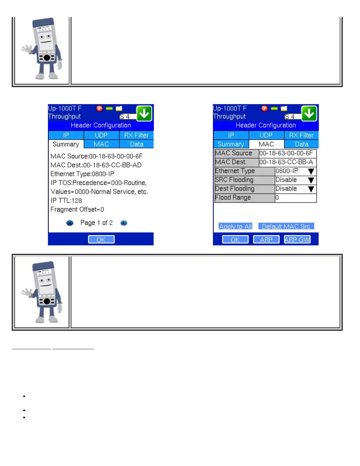 Throughput - Header Summary Stream #1 Throughput - MAC Setup Stream #1