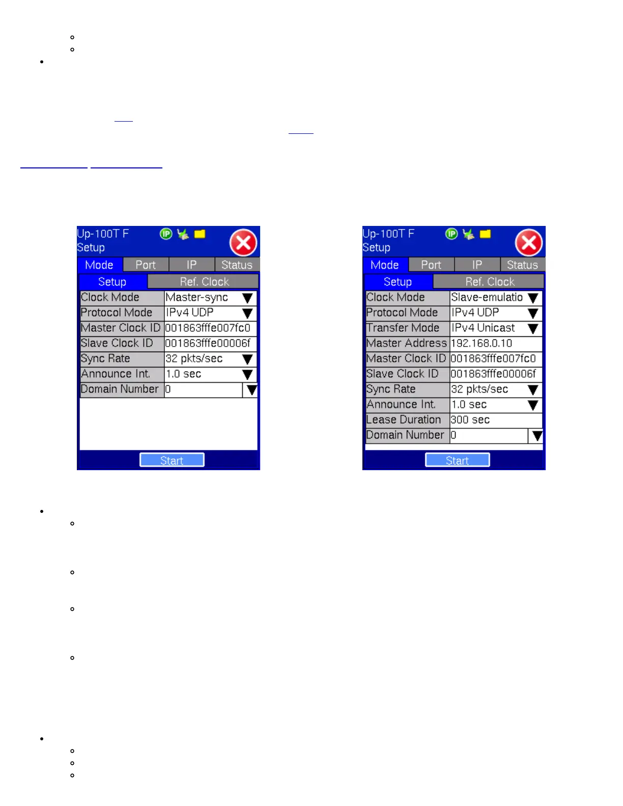Master-sync: Emulates a 1588v2 Master clock device out of the Ethernet test port (10/100/1000BaseT or
