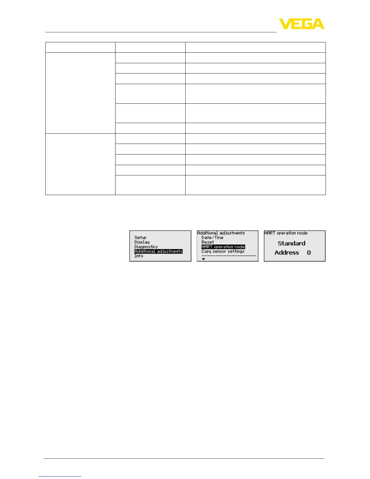 menu item you specify the HART mode and enter the address for