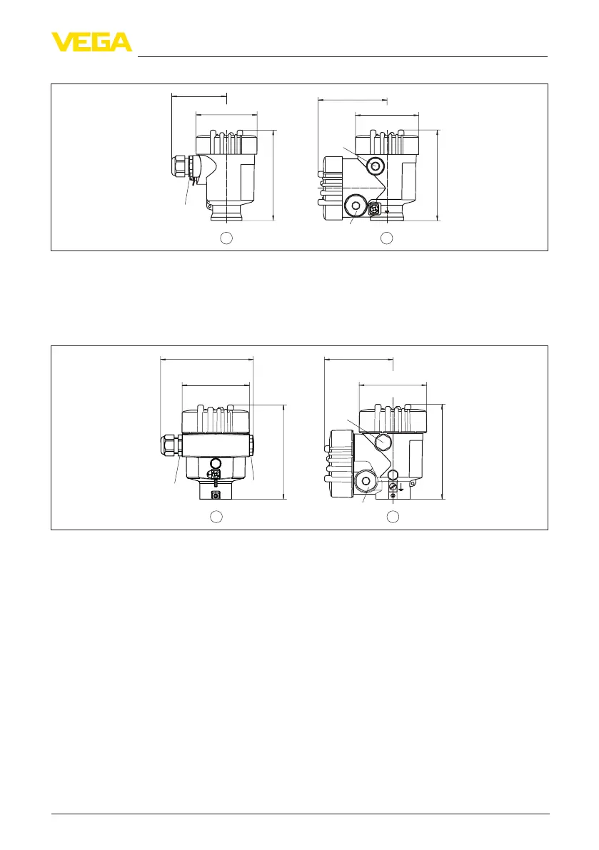 Fig. 56: Housing versions with protection rating IP66/IP68 (0.2 bar), (with integrated display and adjustment mod-