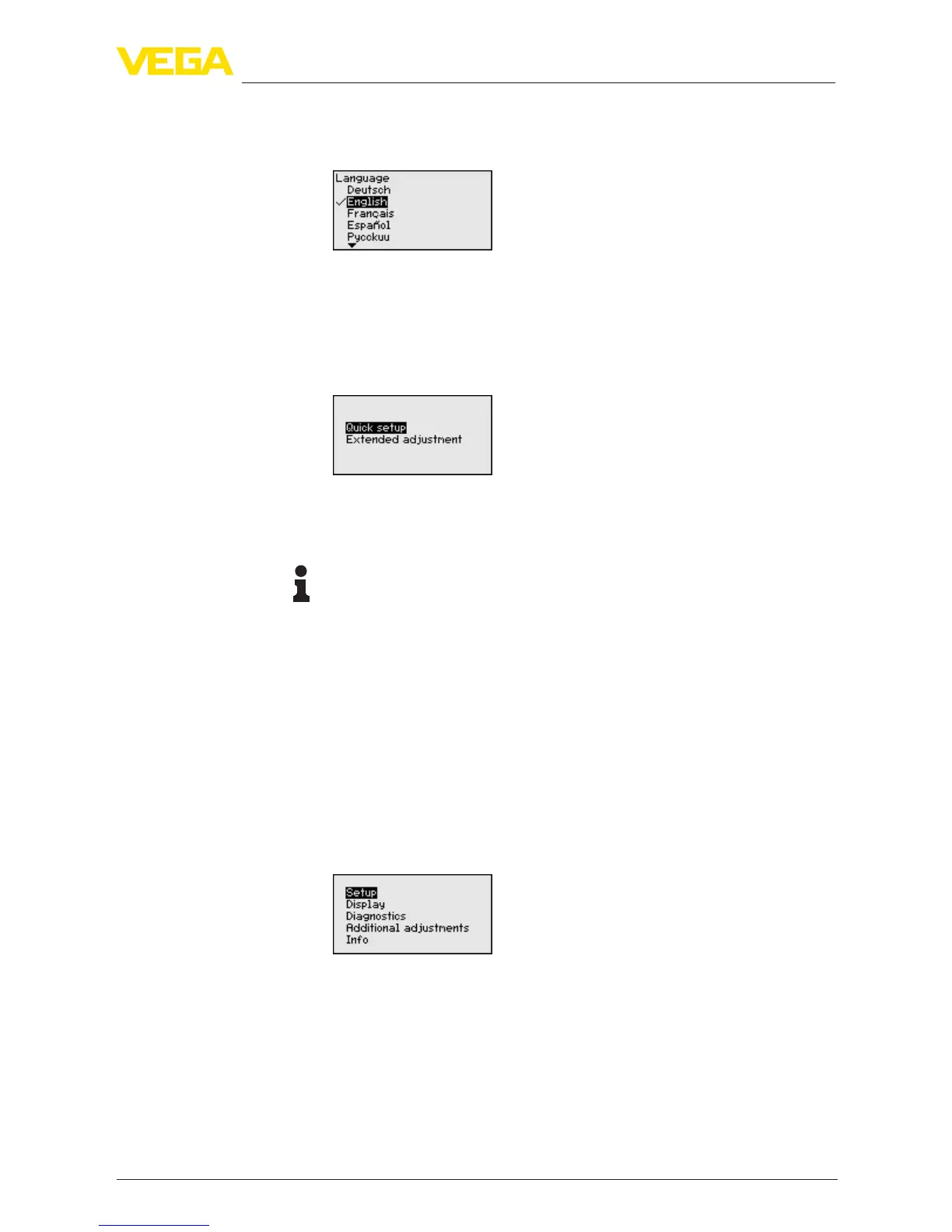 Setup: Settings, for example, for medium, application, vessel, adjust-