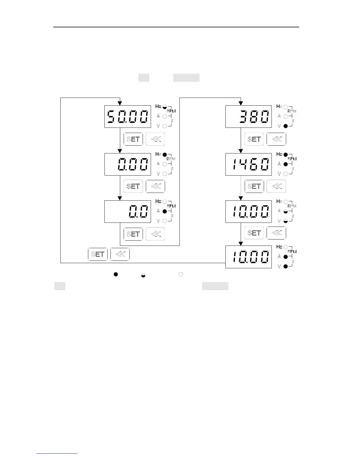 of the display parameters by the SET key and << shifting key. The operation modes are shown as