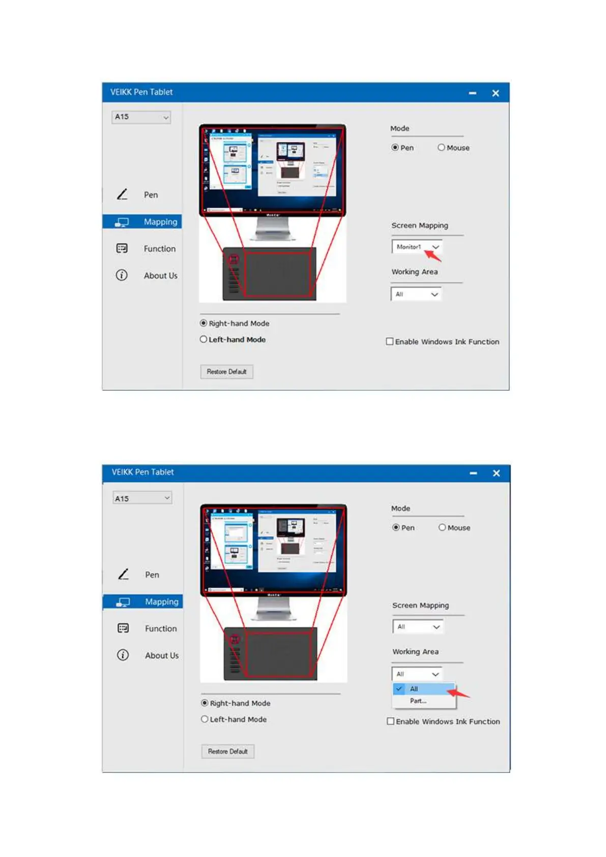 Veikk A15 - Working Area Configuration