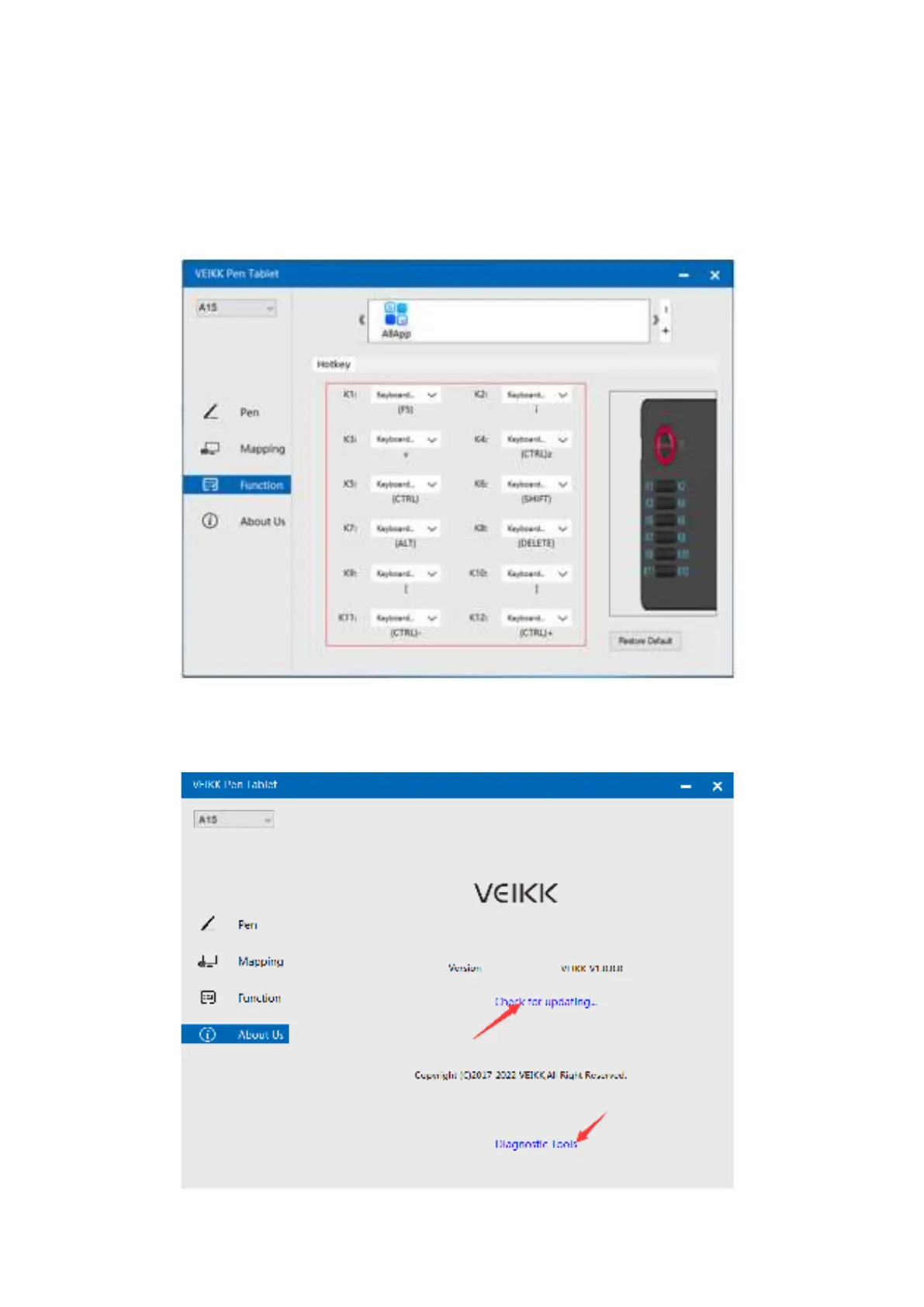 Veikk A15 - About Us and Support; Driver Updates; Diagnostic Tools