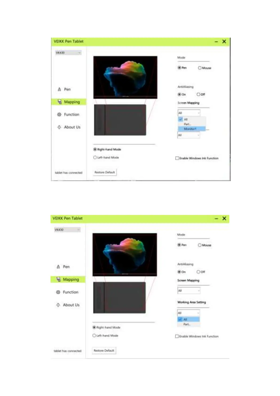 All Area:the entire active area of the tablet.This is the default setting.