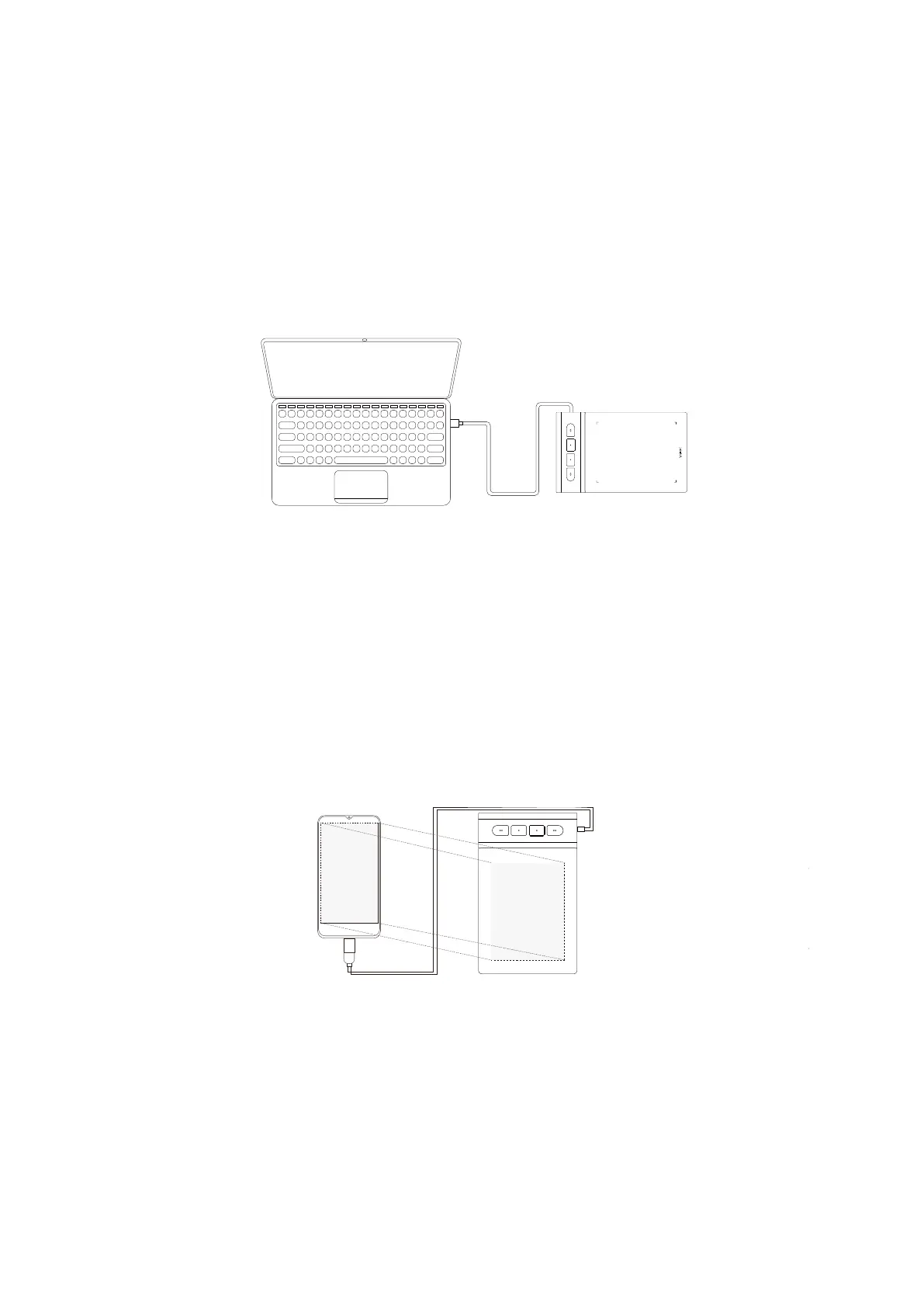1. Connect the tablet to your computer with USB cable.