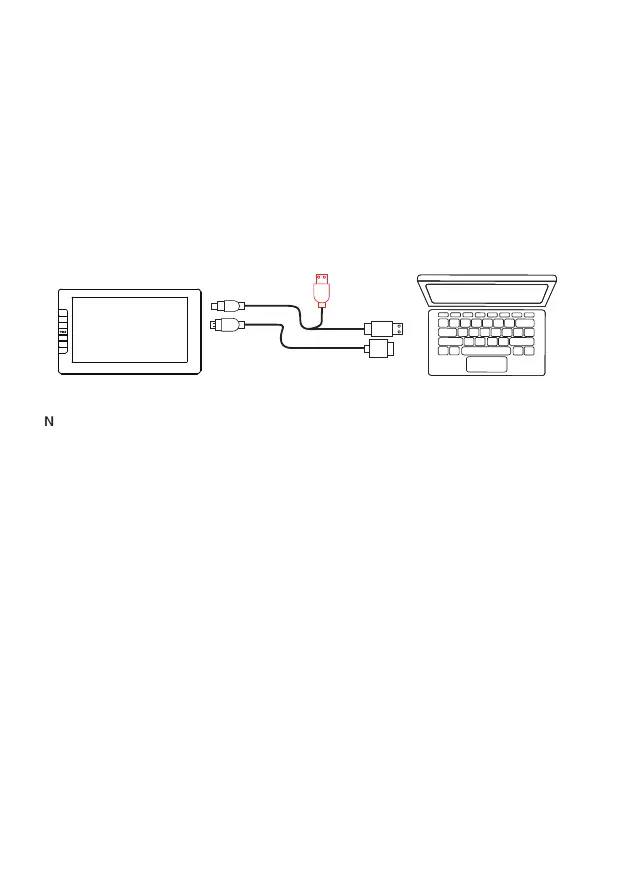 Connect the pen display to your computer with the USB cable and HDMI cable.