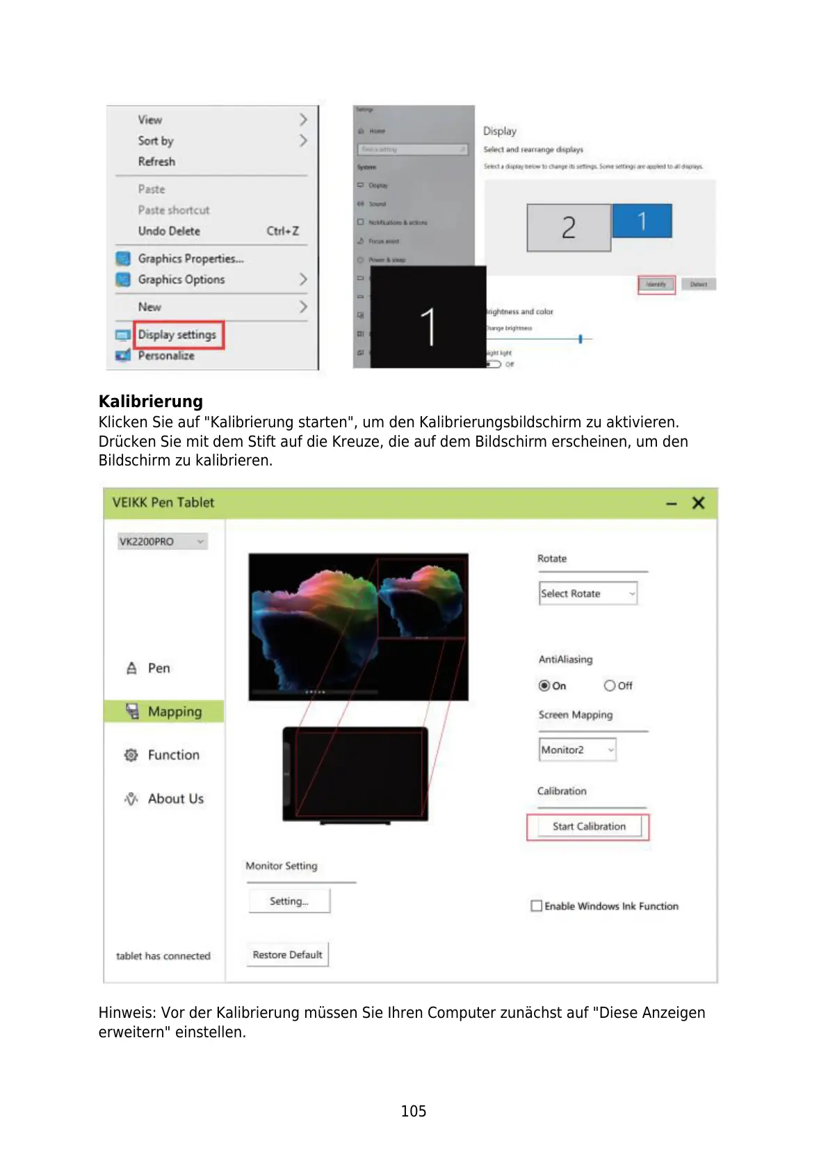 Hinweis: Vor der Kalibrierung müssen Sie Ihren Computer zunächst auf "Diese Anzeigen