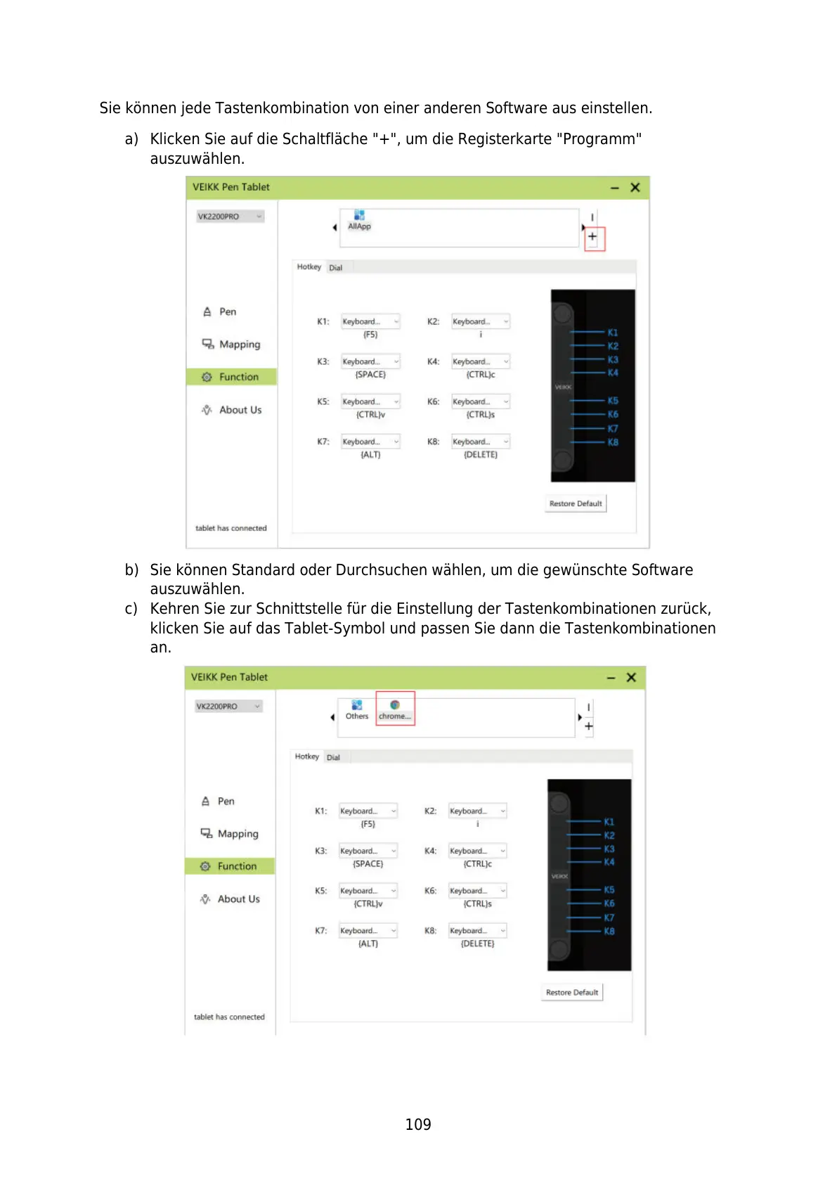 klicken Sie auf das Tablet-Symbol und passen Sie dann die Tastenkombinationen