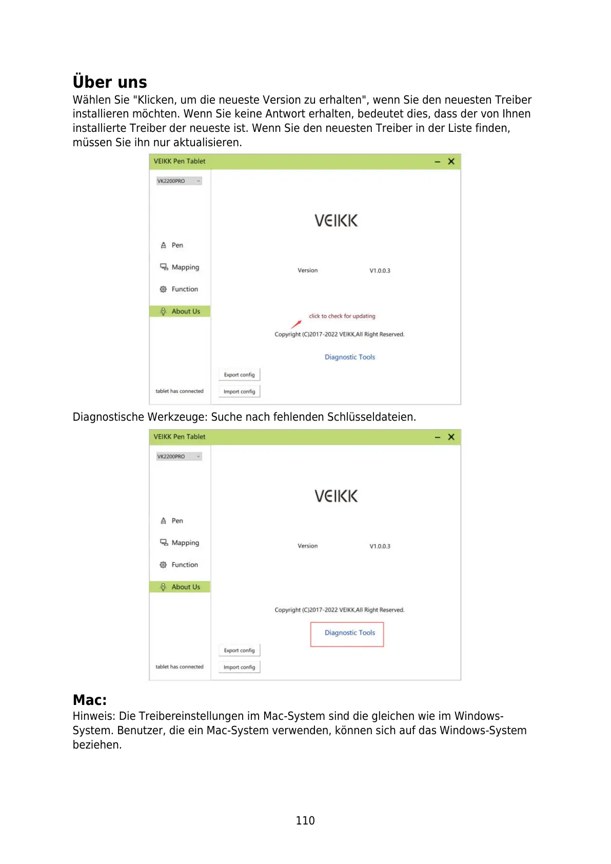 Hinweis: Die Treibereinstellungen im Mac-System sind die gleichen wie im Windows-