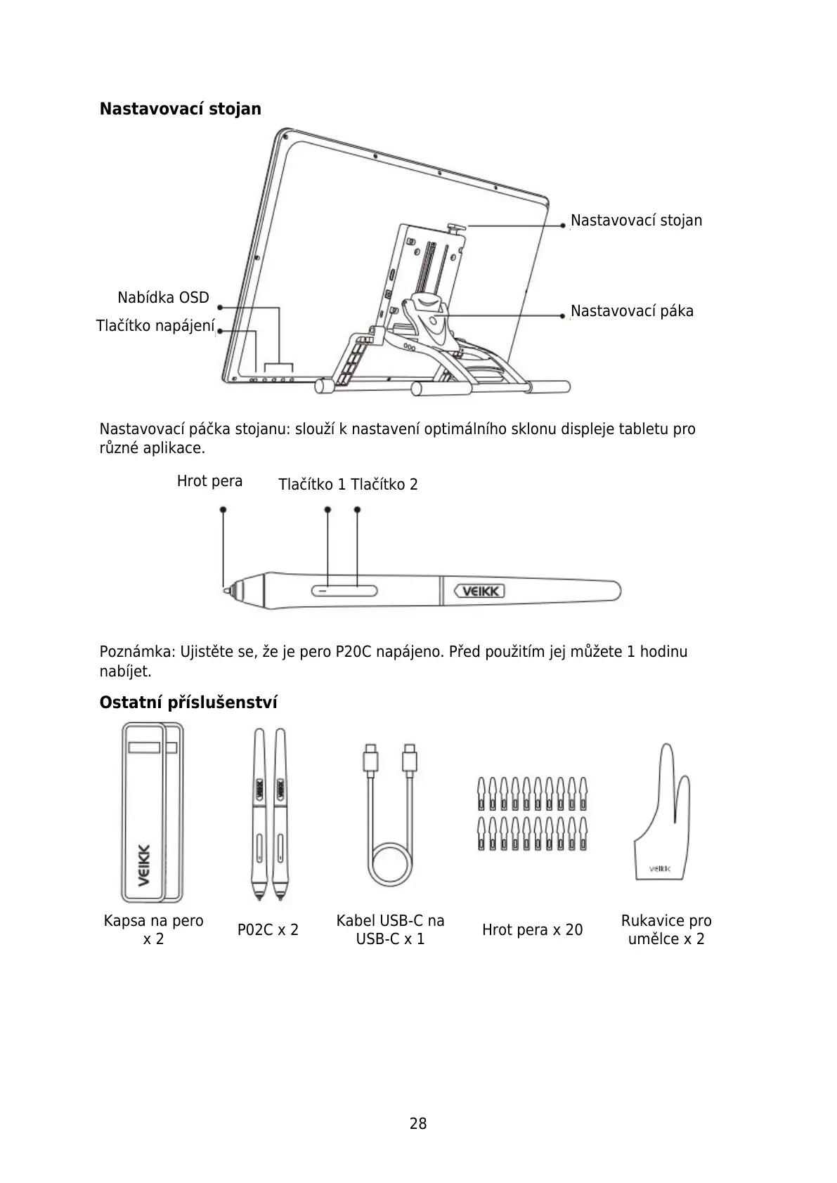 Poznámka: Ujistěte se, že je pero P20C napájeno. Před použitím jej můžete 1 hodinu