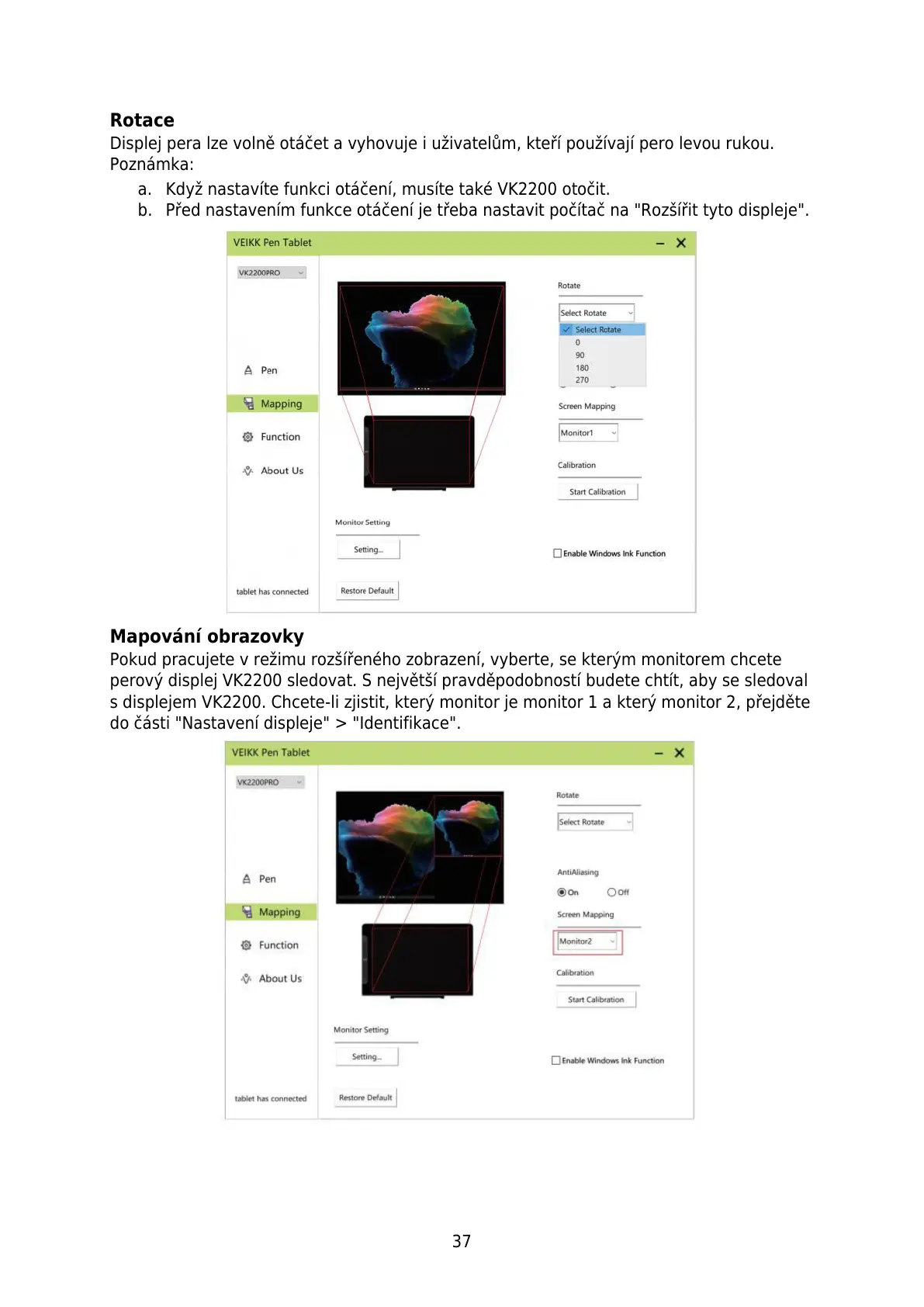 a. Když nastavíte funkci otáčení, musíte také VK2200 otočit.