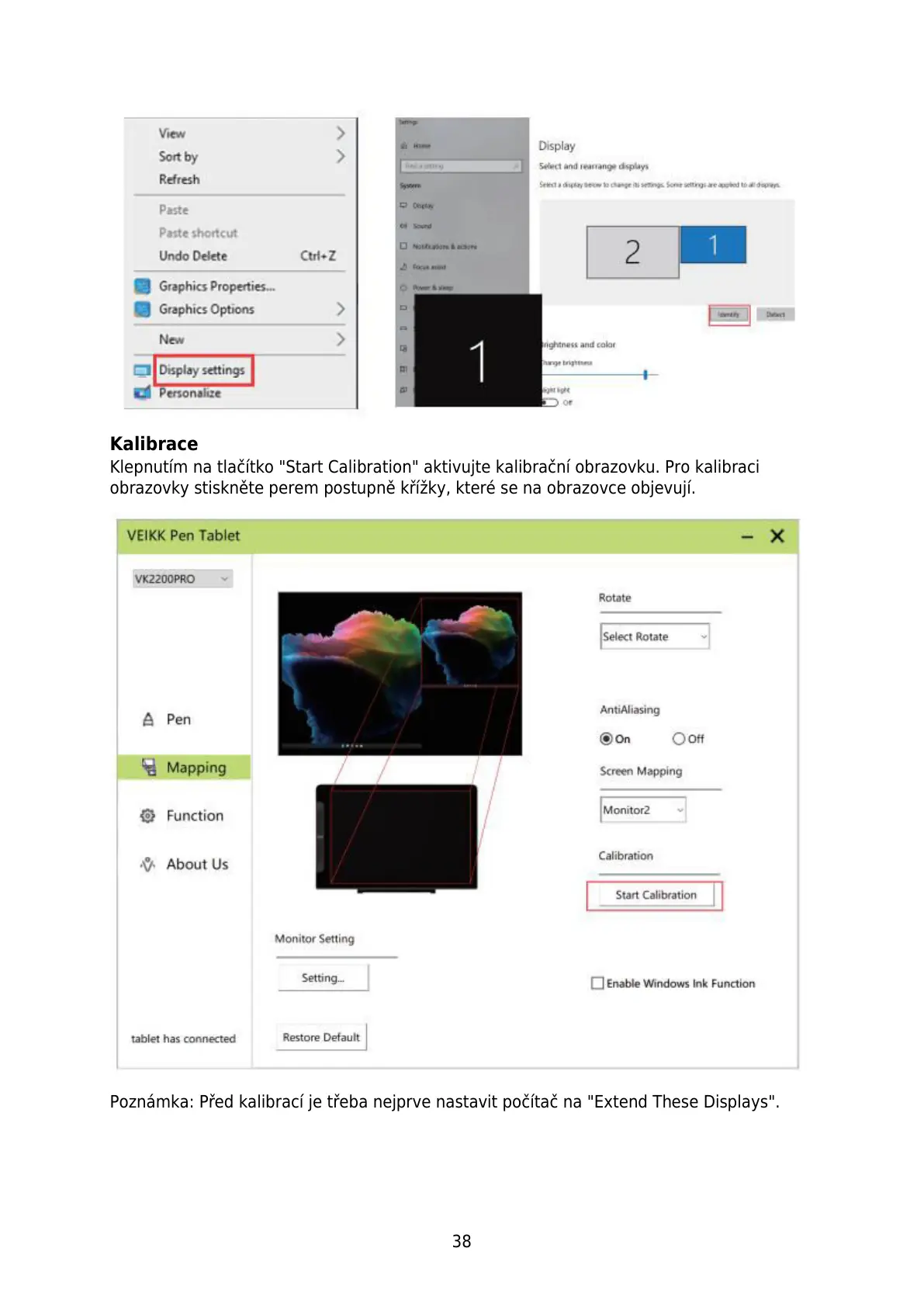 Poznámka: ed kalibrací je třeba nejprve nastavit počítač na "Extend These Displays".
