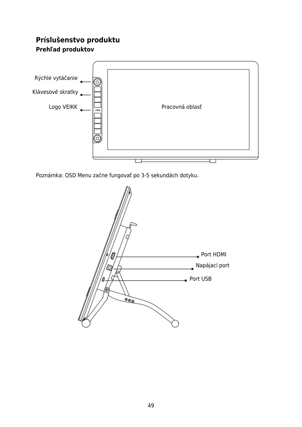 Poznámka: OSD Menu začne fungovať po 3-5 sekundách dotyku.