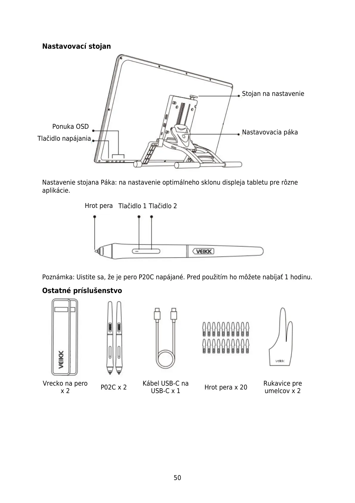 Poznámka: Uistite sa, že je pero P20C napájané. Pred použitím ho môžete nabíjať 1 hodinu.