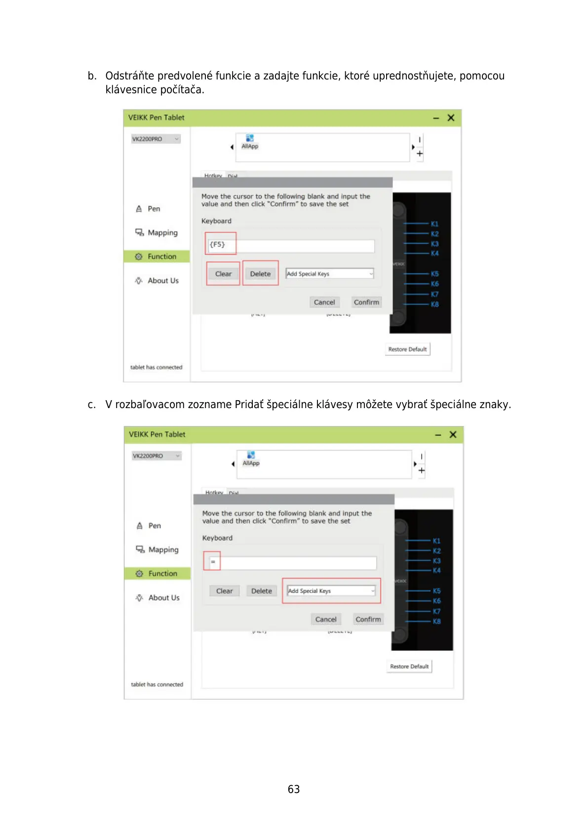 b. Odstráňte predvolené funkcie a zadajte funkcie, ktouprednostňujete, pomocou