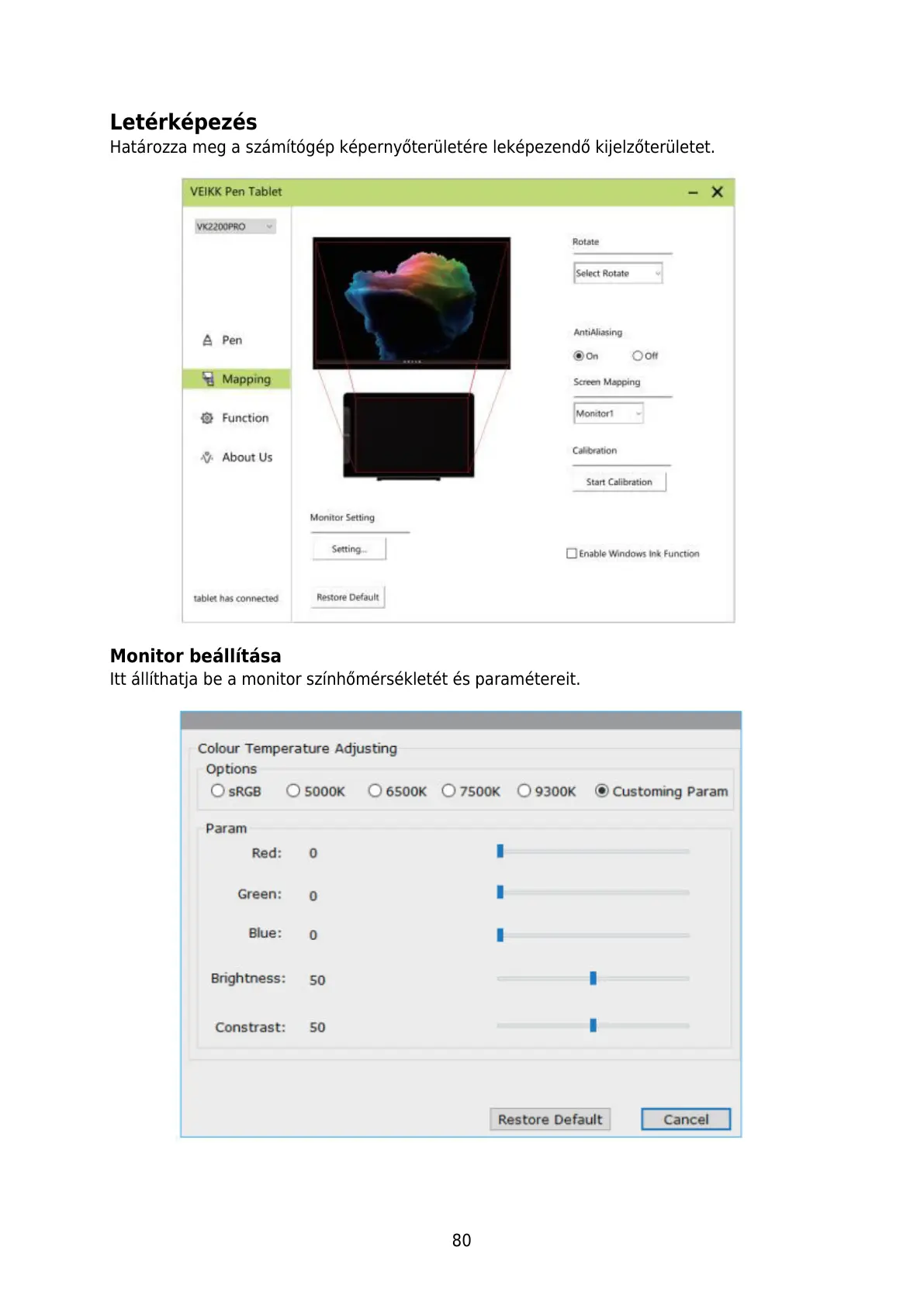 Itt állíthatja be a monitor színhőmérsékletét és paramétereit.