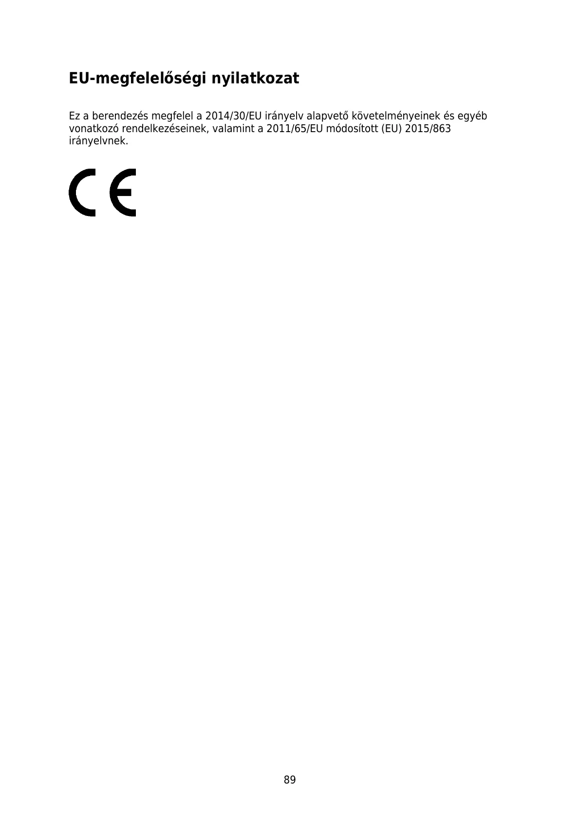 Ez a berendezés megfelel a 2014/30/EU irányelv alapvető követelményeinek és egb