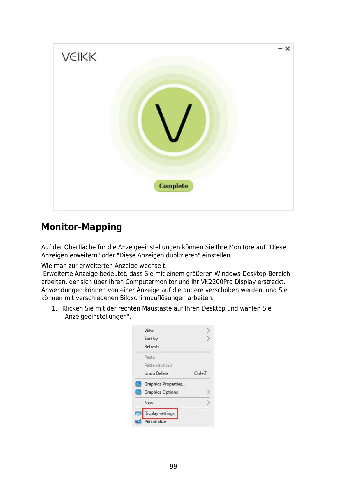 arbeiten, der sich über Ihren Computermonitor und Ihr VK2200Pro Display erstreckt.