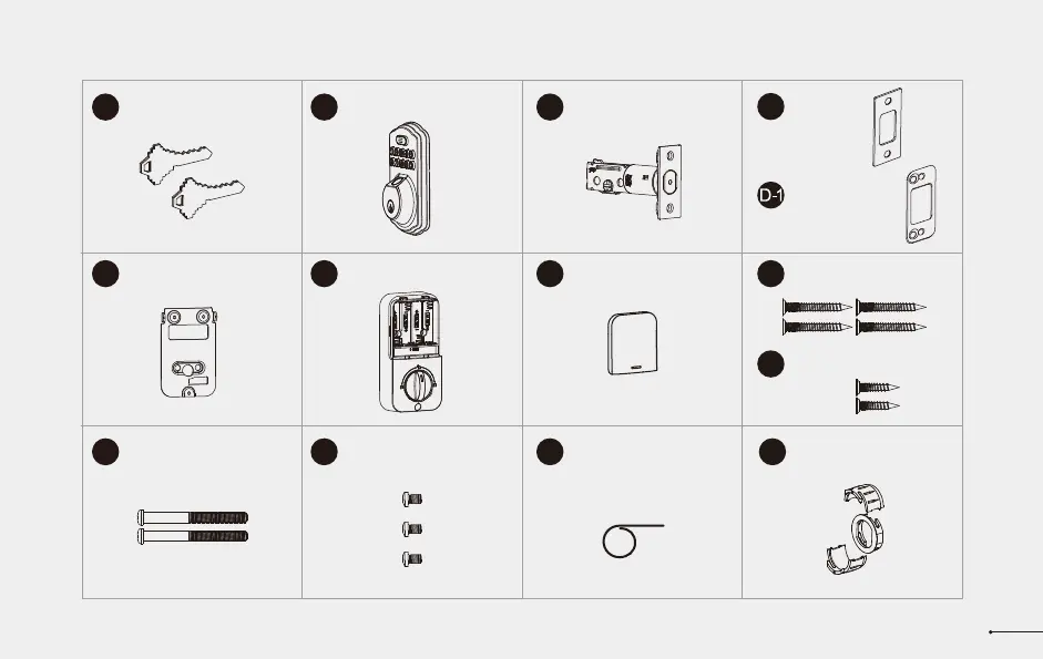 Mounting Plate x1 Interior Assembly x1 Battery Cover x1 Strike Screws x4